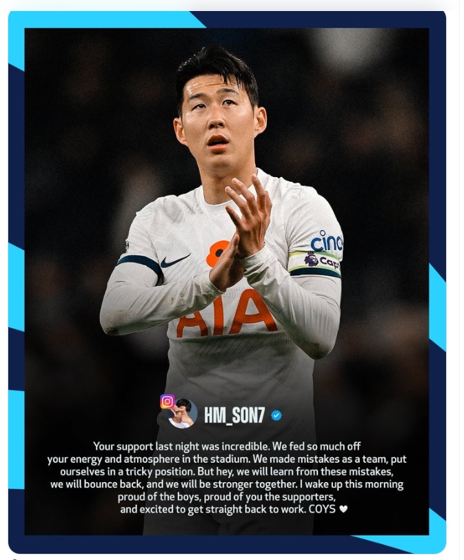 첼시와의 경기에서 패배 후 팬들에게 전한 손흥민 선수의 메세지를 본 토트넘 팬들의 반응을 모은 손흥민 해외반응 모음입니다.